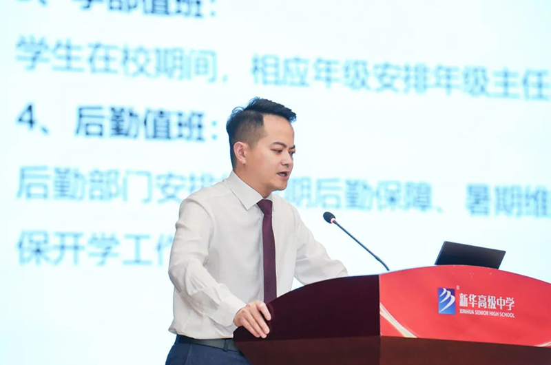 為全面總結(jié)本學(xué)期教育教學(xué)工作,明確發(fā)展方向,確保假期安全有序,凝聚全體教職工共識(shí),促進(jìn)學(xué)校高質(zhì)量發(fā)展。7月12日,新華高級(jí)中學(xué)在文體中心報(bào)告廳隆重召開(kāi)2023-2024學(xué)年第二學(xué)期期末全體教職工會(huì)議。新華高級(jí)中學(xué)校長(zhǎng)徐邦民,副校長(zhǎng)蔡賢滿、吳東、方明生等領(lǐng)導(dǎo)及全體教職員工共同參加,大會(huì)由方明生校長(zhǎng)主持。