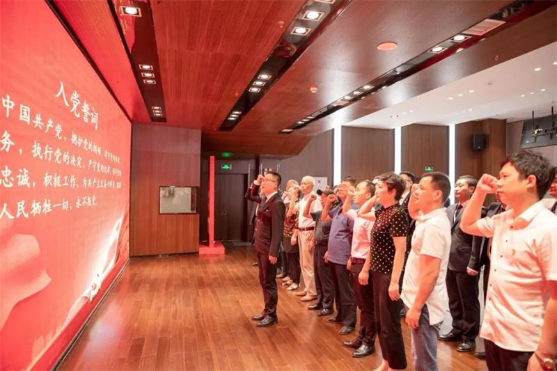 會議在雄壯有力的“重溫入黨宣誓”中拉開帷幕。華地好生活集團(tuán)黨支部代表劉克鑫帶領(lǐng)全體黨員面對鮮紅的黨旗,緊握右拳,莊重宣誓,銘記初心使命,汲取前行力量!