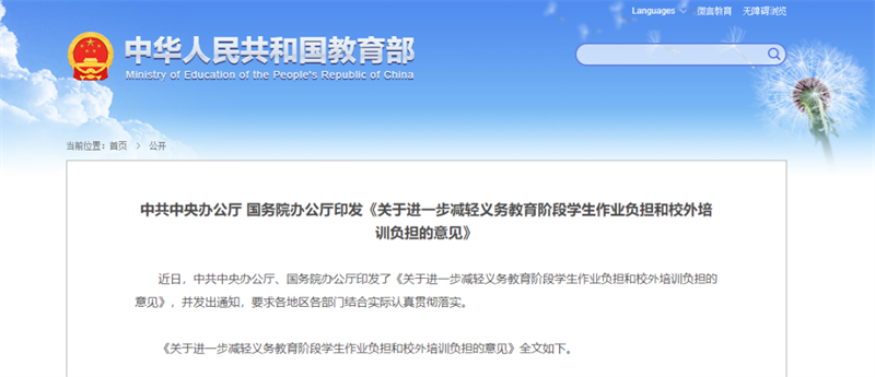 受到社會廣泛關(guān)注的重磅文件《關(guān)于進一步減輕義務(wù)教育階段學生作業(yè)負擔和校外培訓負擔的意見》(以下簡稱《意見》),7月24日由新華社全文公開。政策明確規(guī)定:各種校外培訓機構(gòu)不得占用國家法定節(jié)假日、休息日及寒暑假期組織學科類培訓;同時要大力提升學校教學質(zhì)量,老師應(yīng)教盡教,確保學生在校內(nèi)學足學好。“雙減”政策落地,旨在減輕學生過重的課業(yè)負擔,將教育回歸學校。