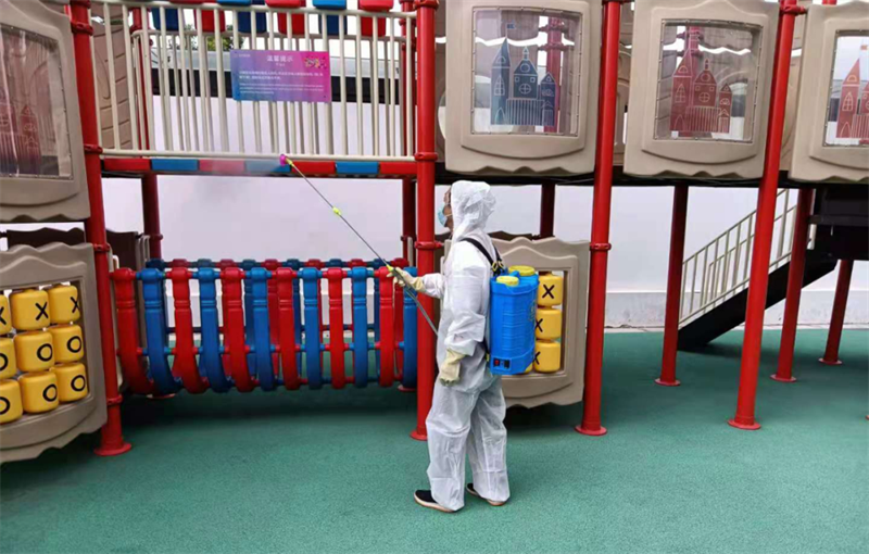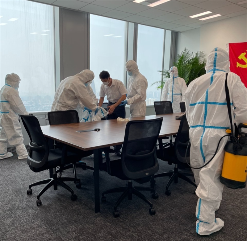 針對(duì)園區(qū)、案場(chǎng)、寫字樓、學(xué)校等多個(gè)項(xiàng)目,嚴(yán)格遵循防疫工作標(biāo)準(zhǔn),對(duì)電梯、樓道、垃圾桶、車庫、出入口、兒童設(shè)施等公共區(qū)域堅(jiān)持每日進(jìn)行全覆蓋、高頻次消毒,對(duì)商寫、學(xué)校等重點(diǎn)區(qū)域一天不低于兩次消毒作業(yè),不放過任何一個(gè)衛(wèi)生防疫死角。
