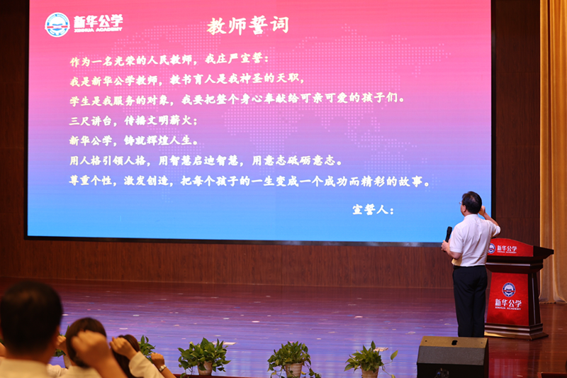 頒獎儀式最后,全體教師莊嚴(yán)宣誓,永葆教育初心,不負(fù)使命。可見唯有平凡,才見高貴;唯有辛勞,方得始終。正是老師們這種付出和奉獻(xiàn),使茁壯成長中的新華公學(xué)管理規(guī)范,課程特色彰顯,教育質(zhì)量穩(wěn)步提升,學(xué)生競賽頻頻獲獎,家長好評紛至沓來。
