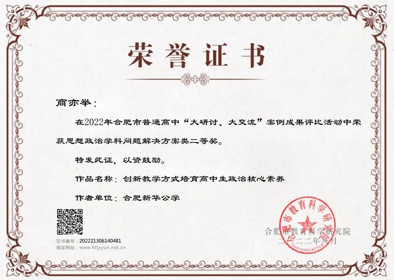 除了學(xué)校內(nèi)部的表彰以外,新華公學(xué)多位教師榮獲合肥市獎項(xiàng),這更是對我校教師教學(xué)水平及師德師風(fēng)的肯定與贊揚(yáng)。
