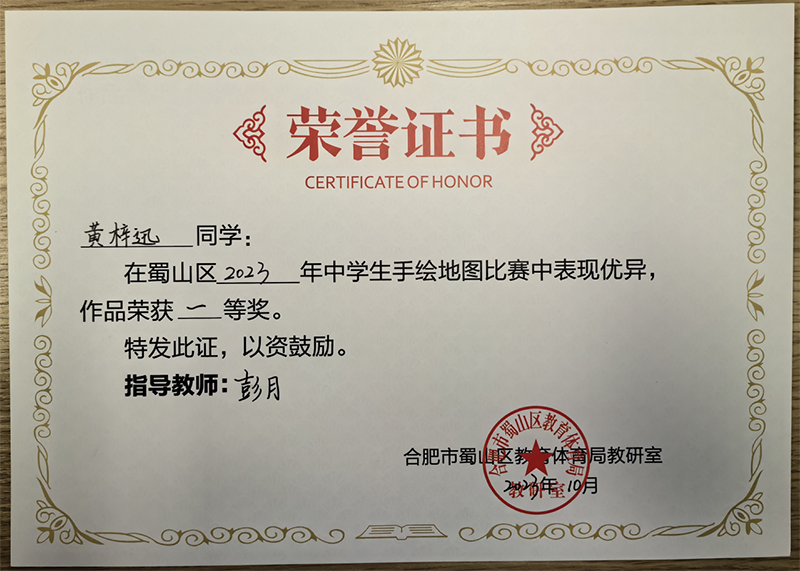 為了落實新課程標準,提升學生地理學科素養,增強學生的版圖意識,在國慶之際,蜀山區舉辦了地理學科2023年蜀山去中學生手繪地圖比賽。新華公學積極響應,參加了本次比賽并取得了優異成績。