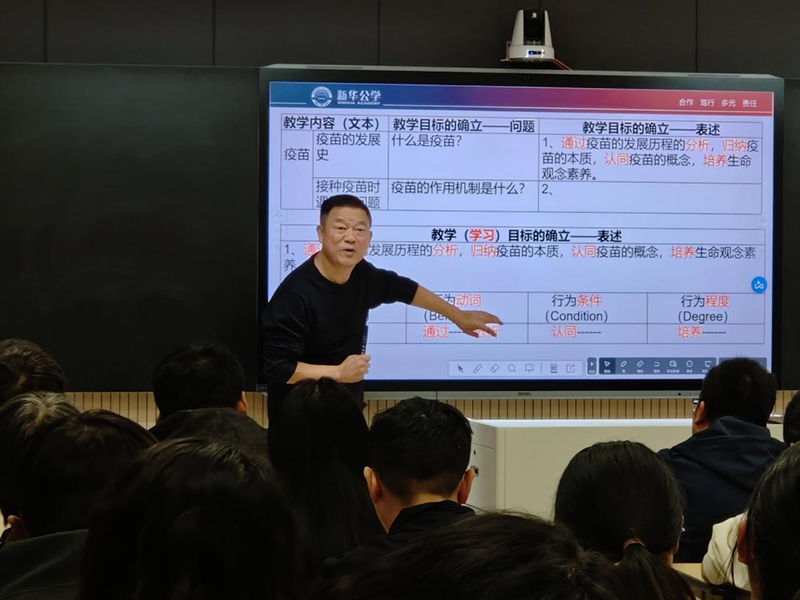 尹校長指出,學教評一致性教學設計是指教師遵循一致性原則,對一節課的課堂教學要完成的學習目標、教學活動及其評估做出科學的設計,是課前進行的專業準備工作,是教師的一項專業技能。