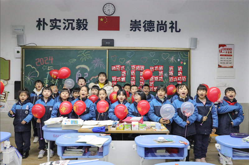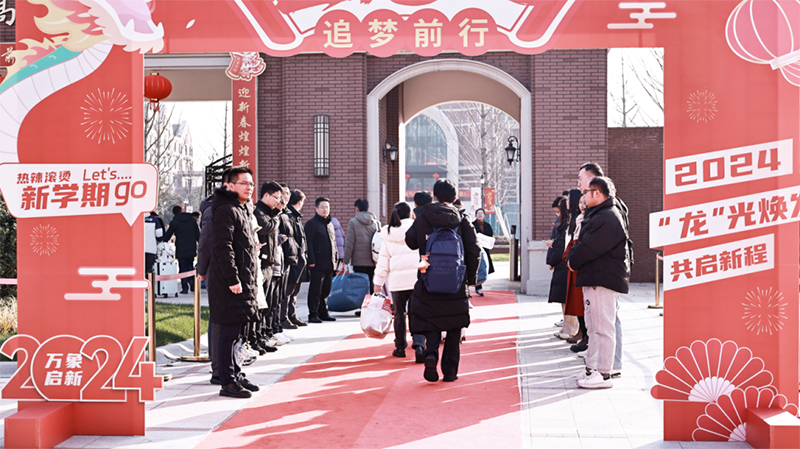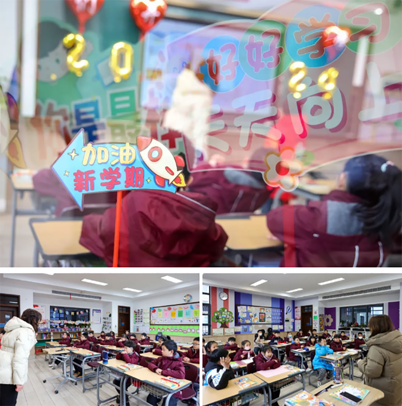 校長和老師們早早就等候孩子們歸來,送上新年的祝福與擁抱。伴隨著一聲聲充滿濃濃情意的“新年好”、“新年快樂”,同學們快樂地踏入校園。