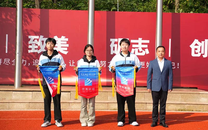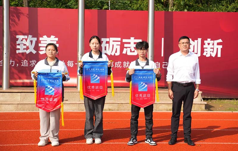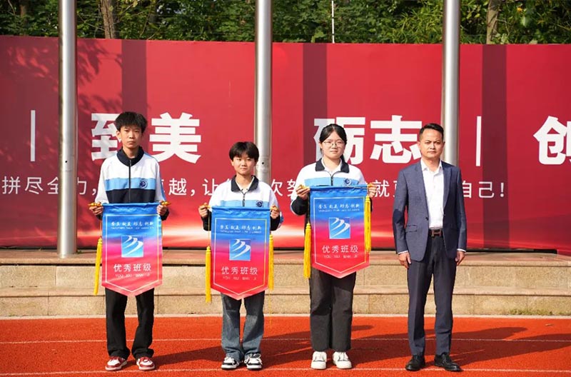 之后,由副校長陳俊、吳東、方明生分別為高中三個年級的優秀班級頒發錦旗。通過流動紅旗的量化評比,讓學生自覺遵守日常行為規范,提高文明素養,養成良好的行為習慣,從而形成良好的班風、校風。同時也號召所有班級向獲獎班級學習,并積極行動起來,規范自己的行為,重視環境衛生、校紀校規,積極為建設文明班級、優秀校園貢獻自己的力量。